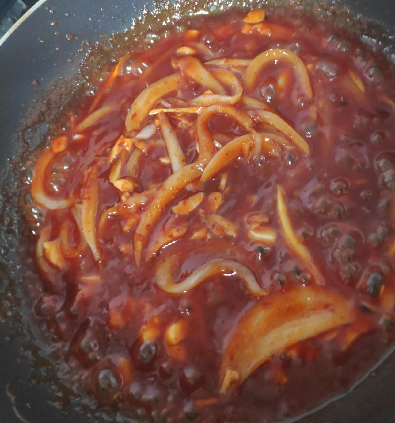 케첩, 물엿, 설탕, 고춧가루, 간장, 물을
