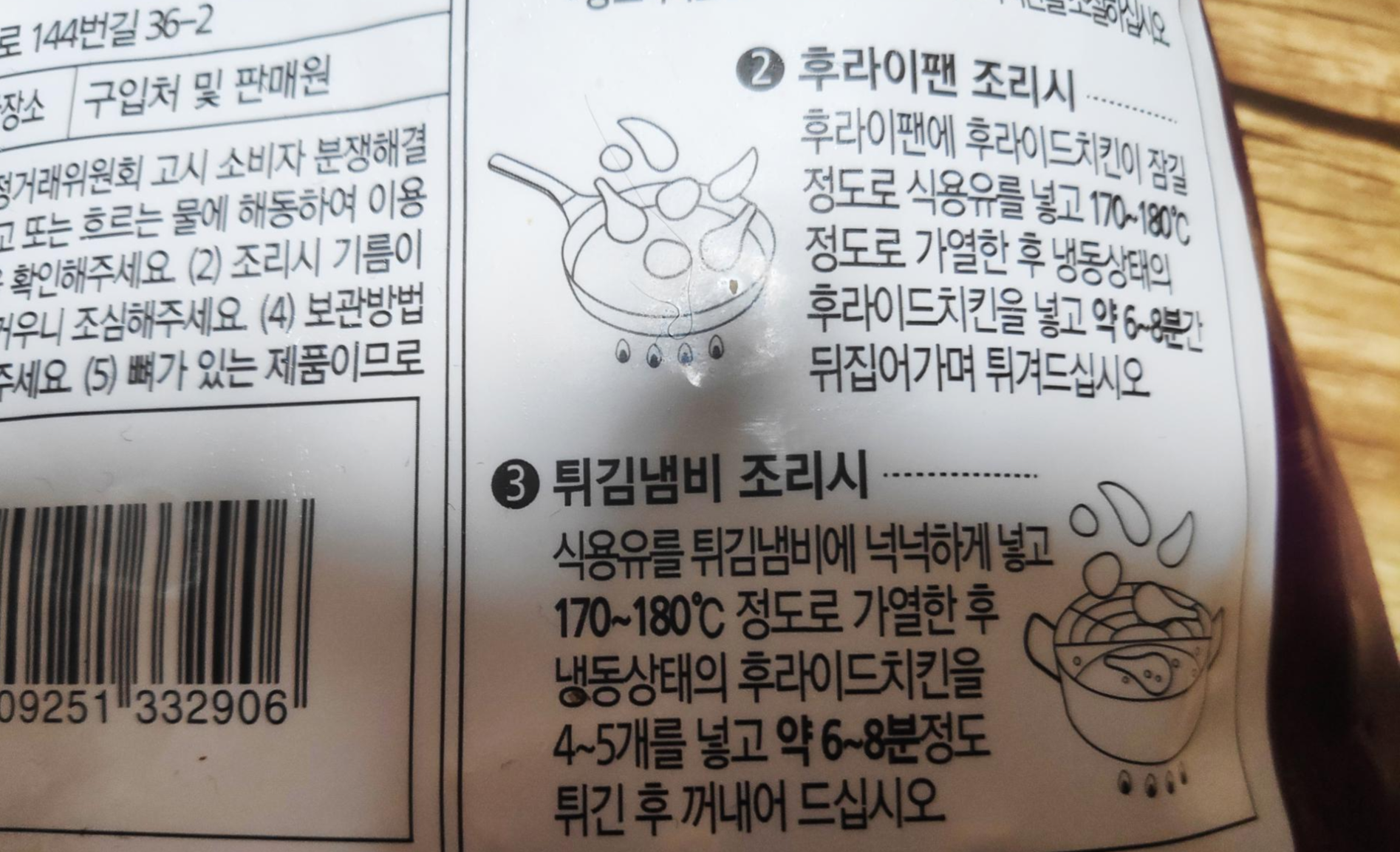 그 밑으로 후라이팬과 튀김냄비 조리시 설명이 나와있습니다.