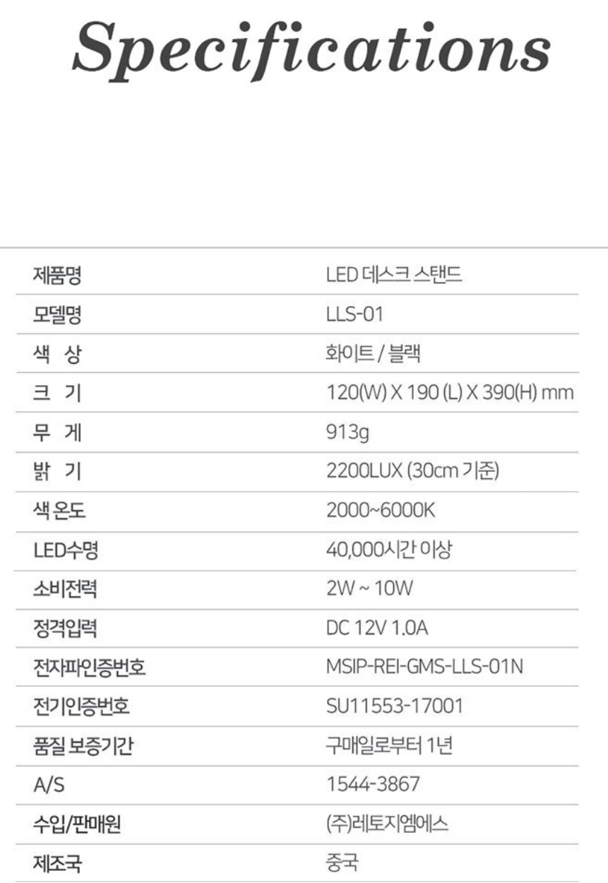 레토 LED 데스크 스탠드 LLS-01