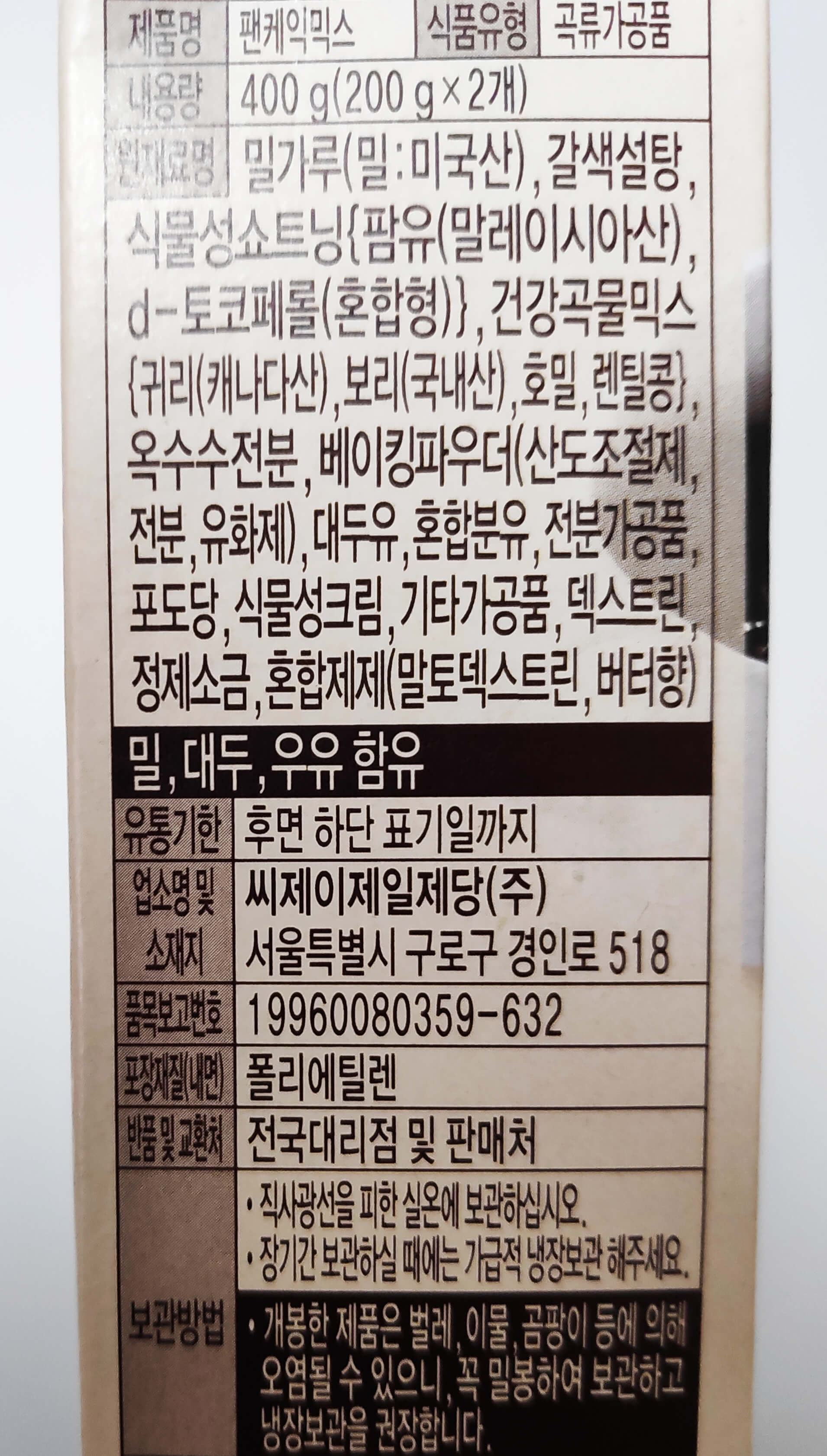 200g 씩 포장 되어있는 백설 팬케익믹스를 선택!!