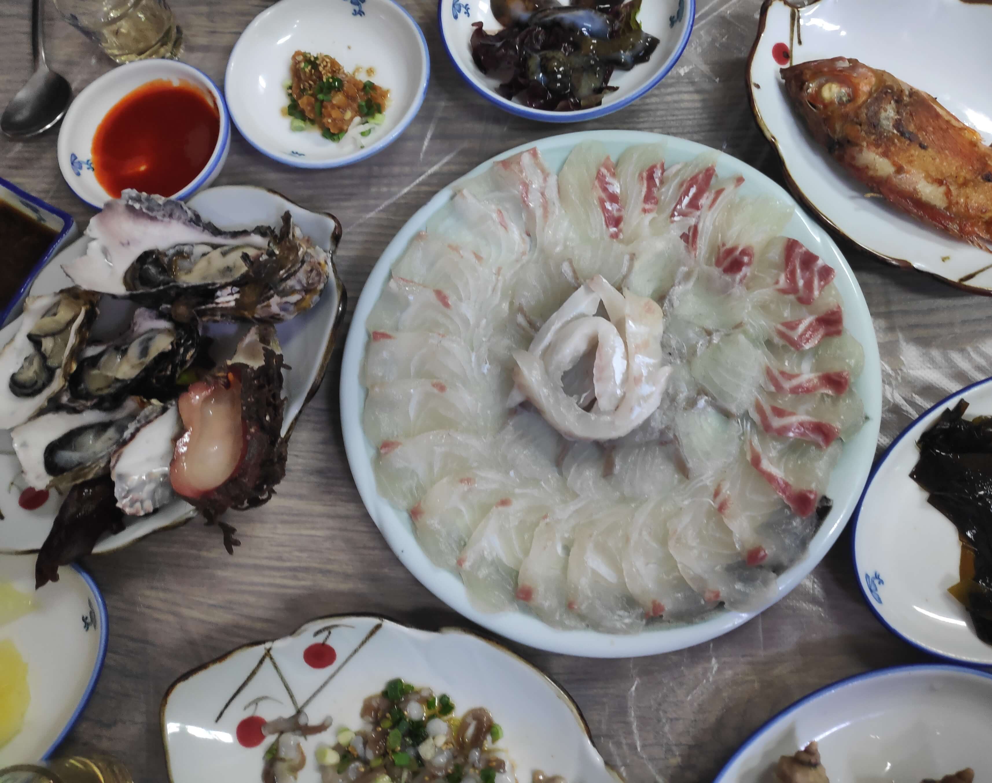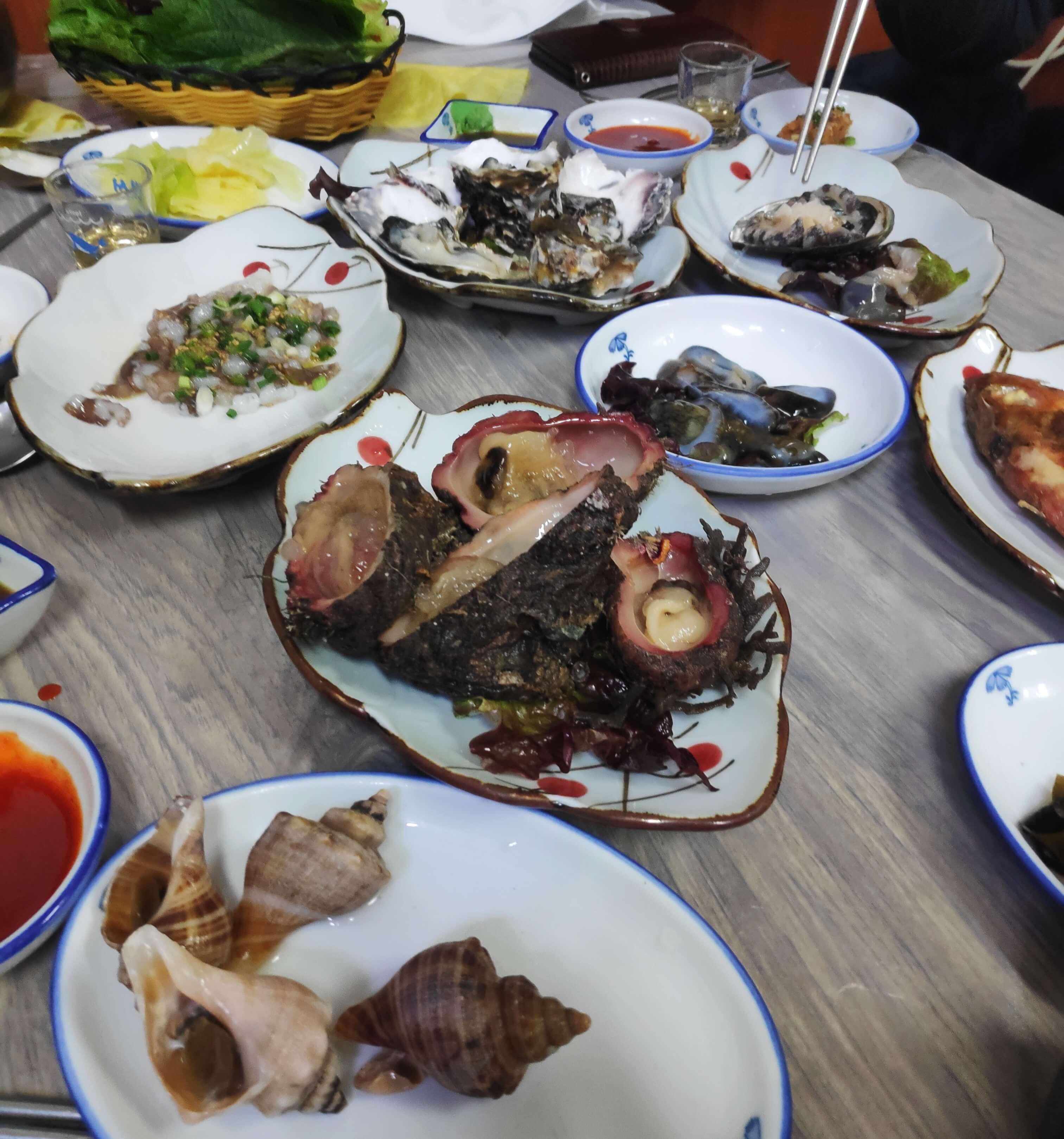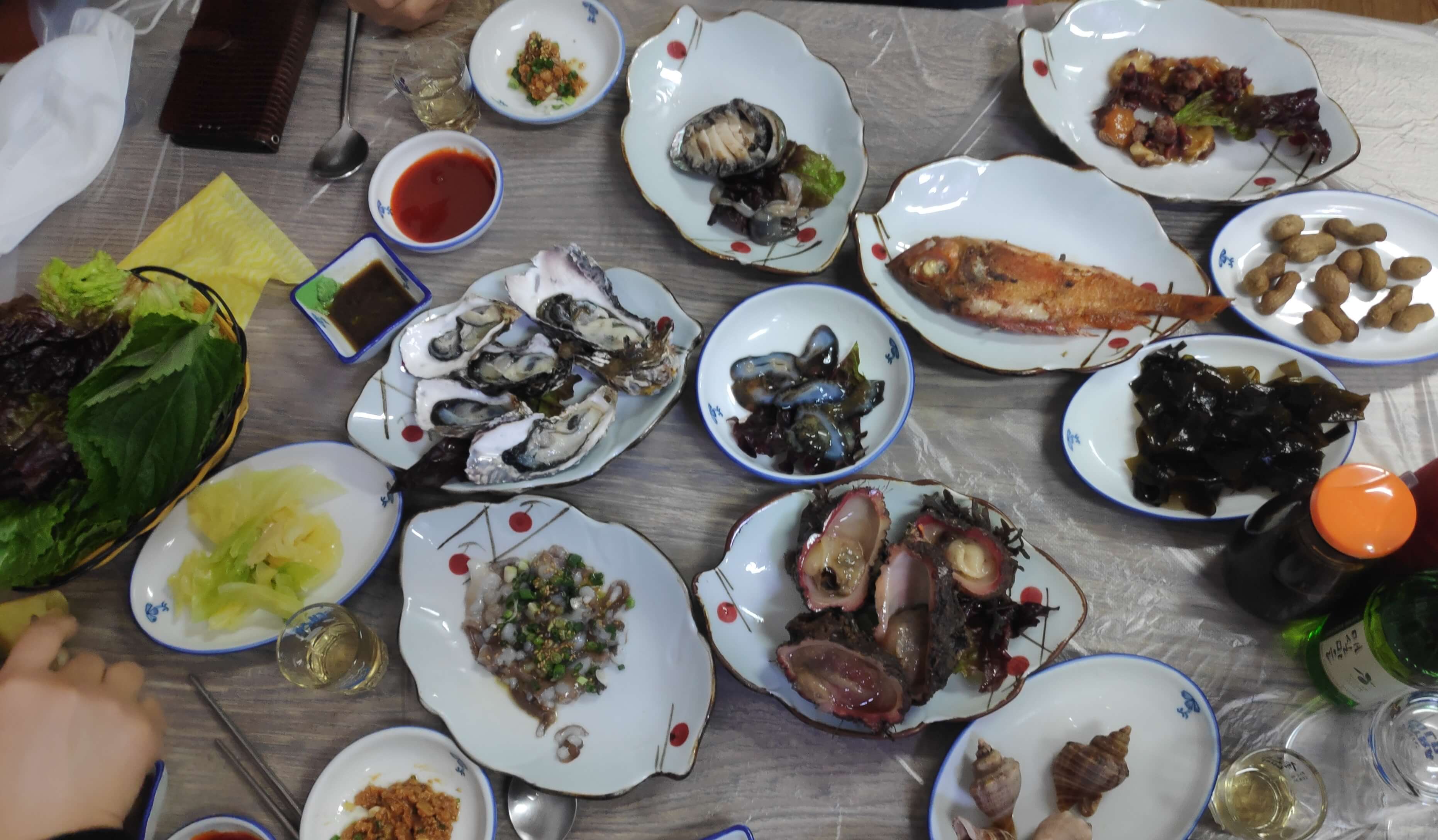 전복, 해삼, 멍게, 돌멍게, 낙지탕탕, 생굴, 소라 등
