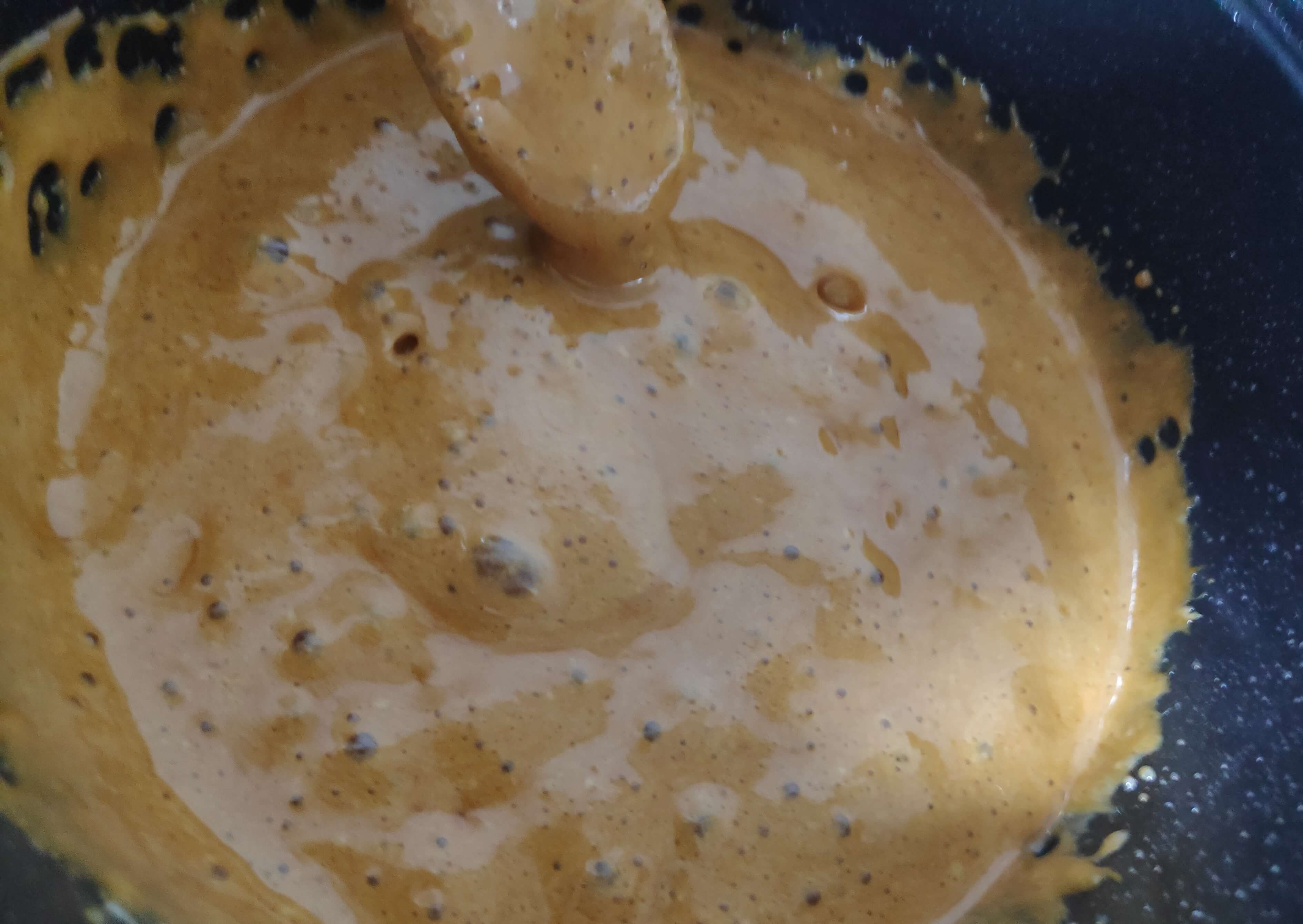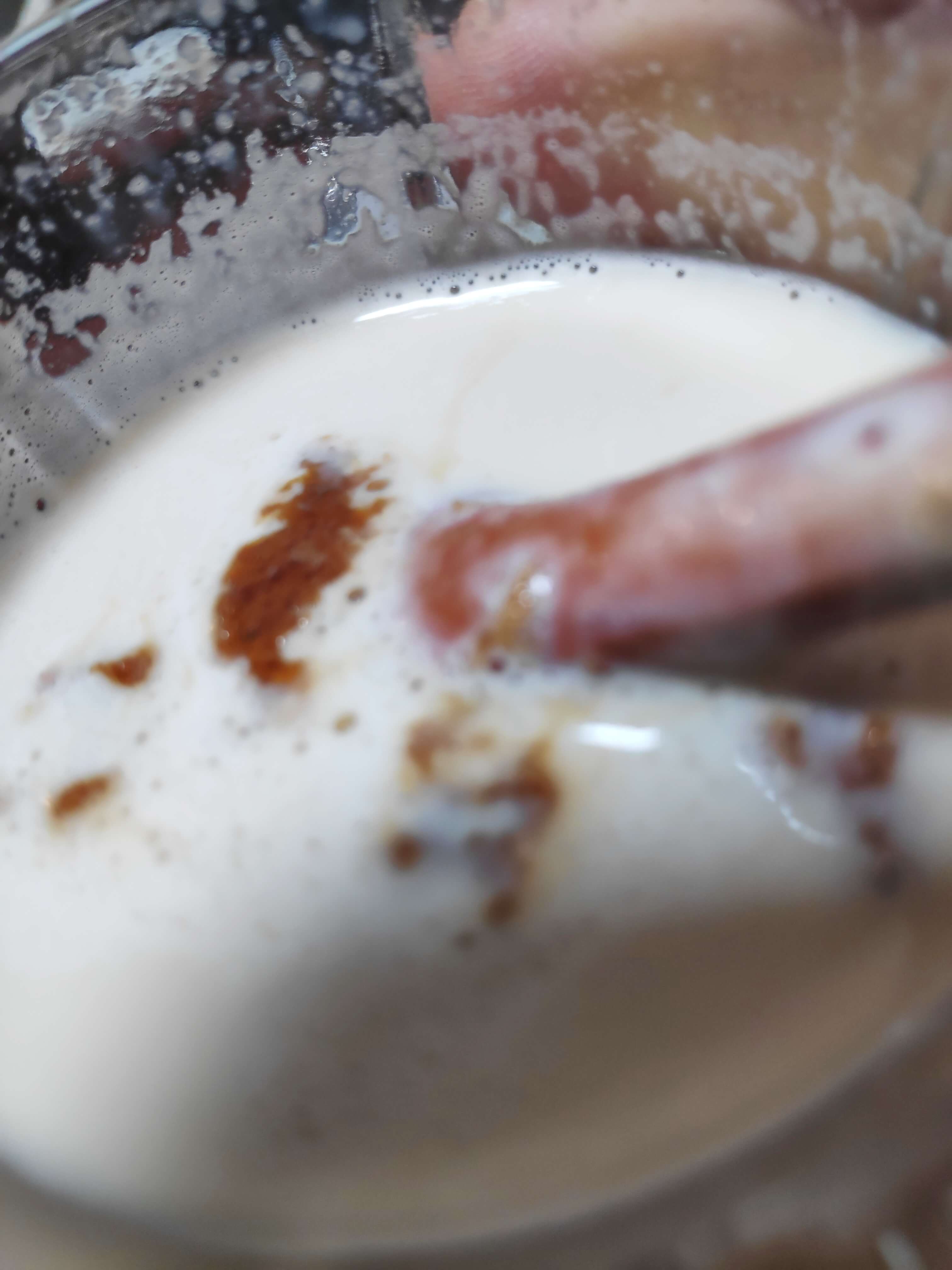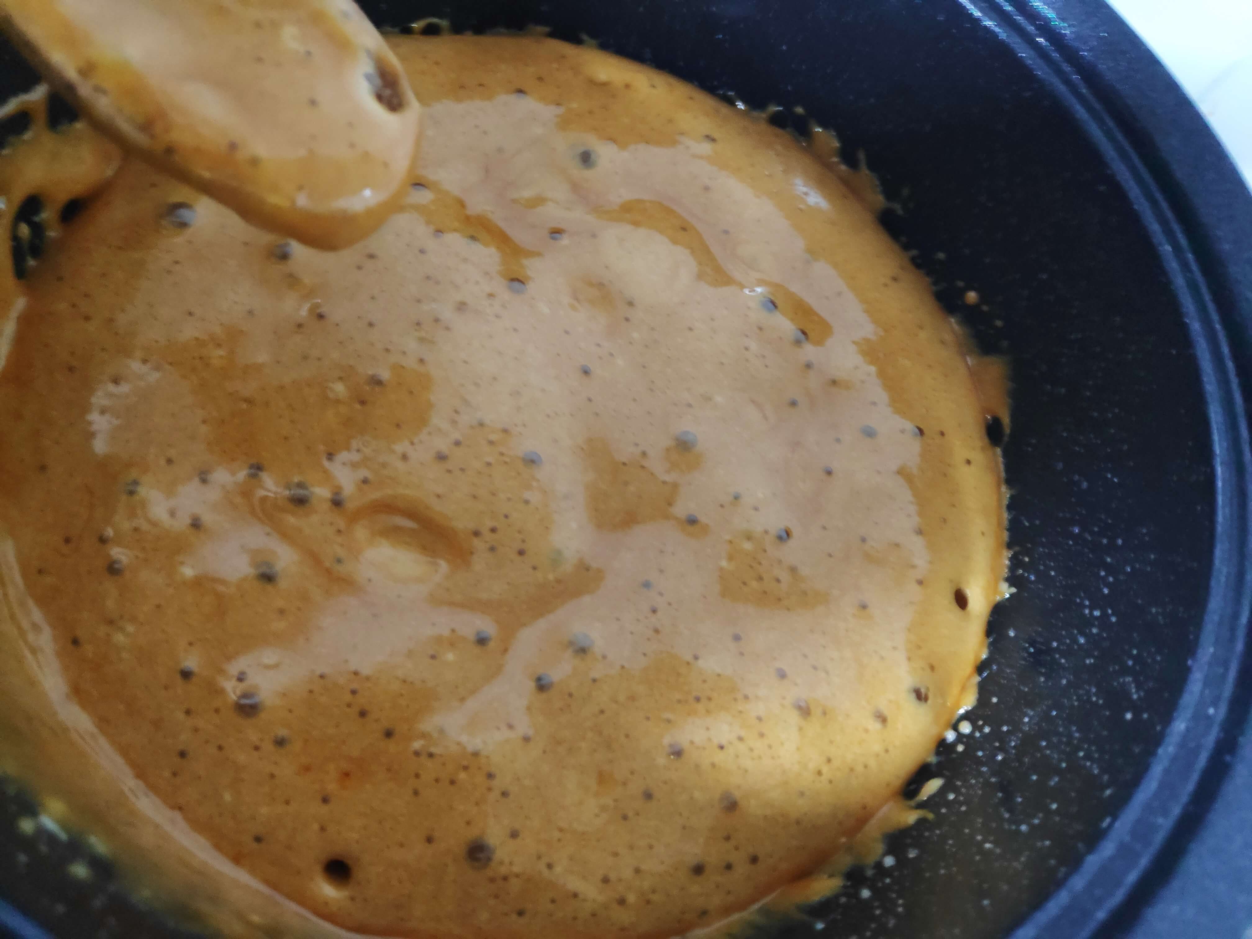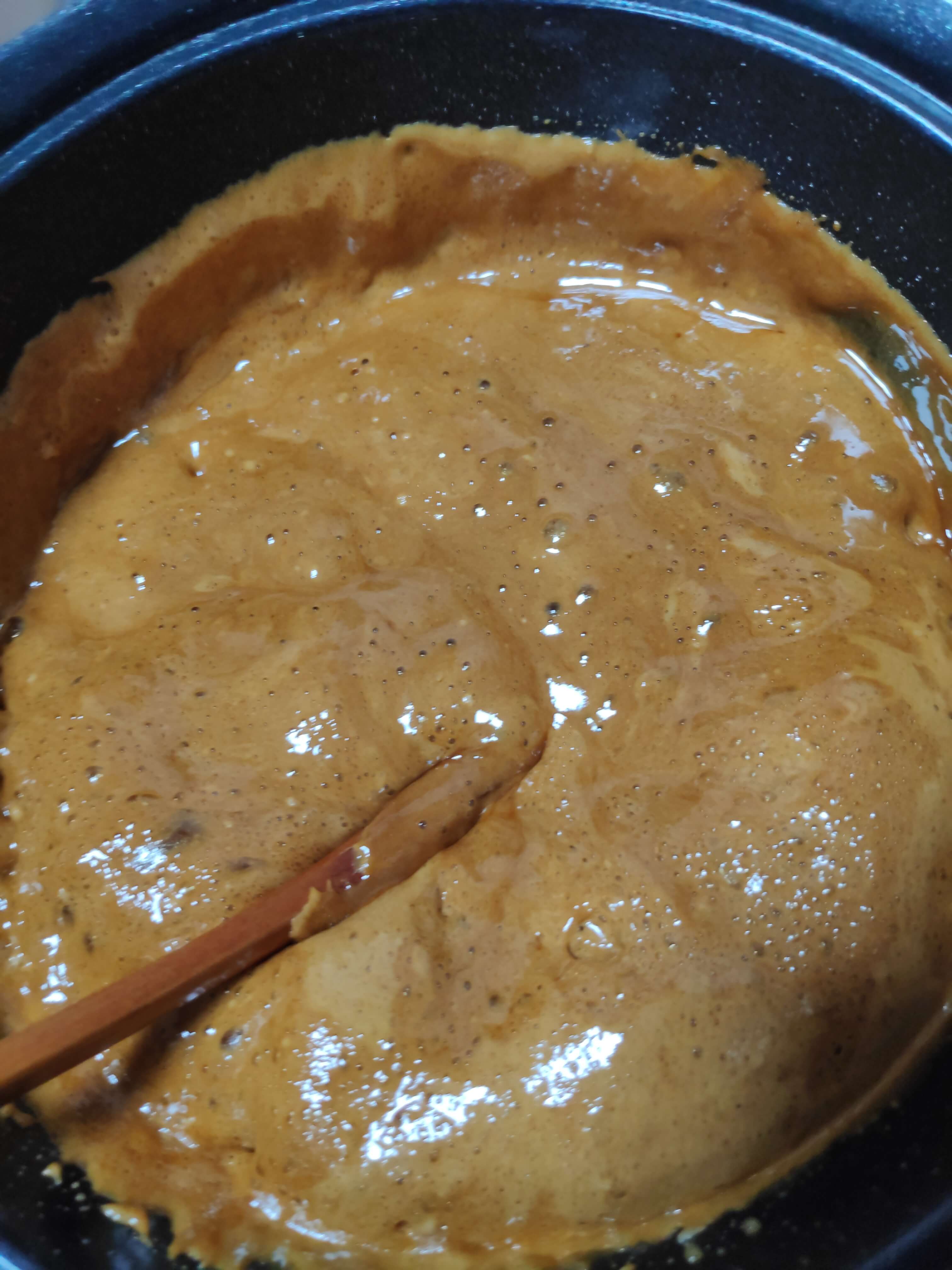 | 3. 저어주기, 식히기 | - 소다를 넣는 즉시 빠르게 저어준다 - 부풀어 오르는 걸 신경 쓰지 않고 계속 빠르게 저어준다. ---- - 결과물을 얇게 펼쳐 식힐 수 있는 넓은 쟁반 추천 - 되도록이면 얇게 펼쳐서 식혀준다. |