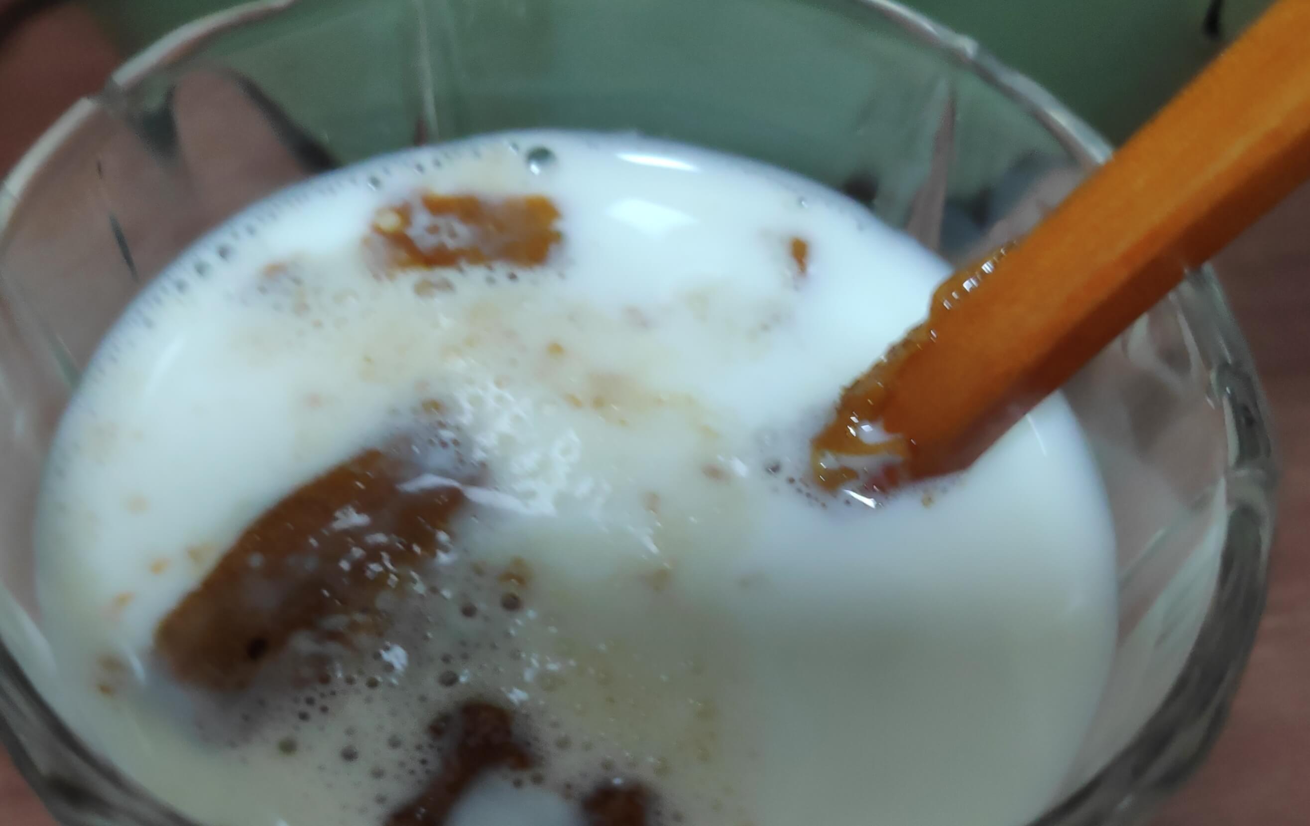 우유에 녹아내리는 가루와 씹히는 달고나
