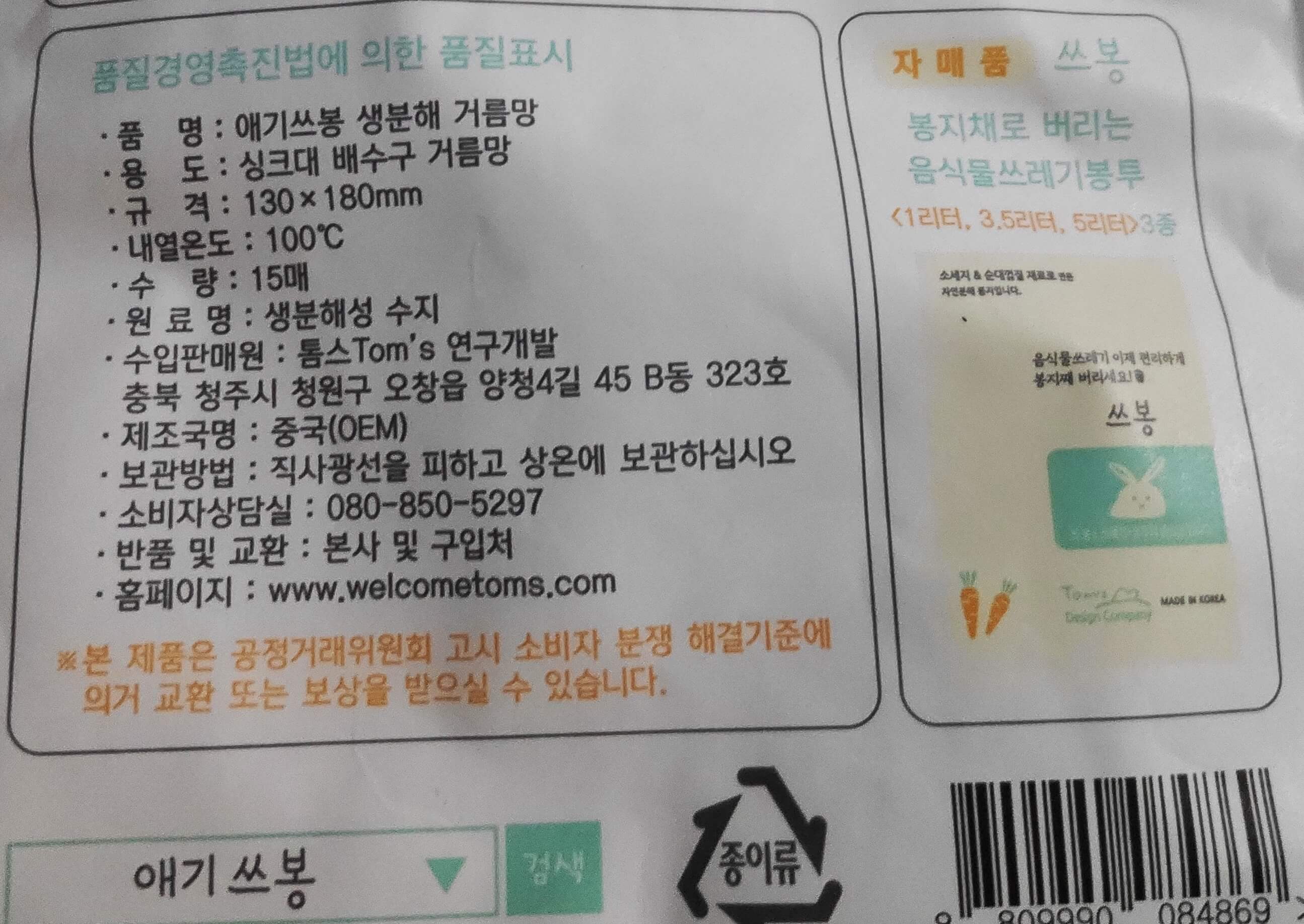 음식물쓰레기봉투(통)에
