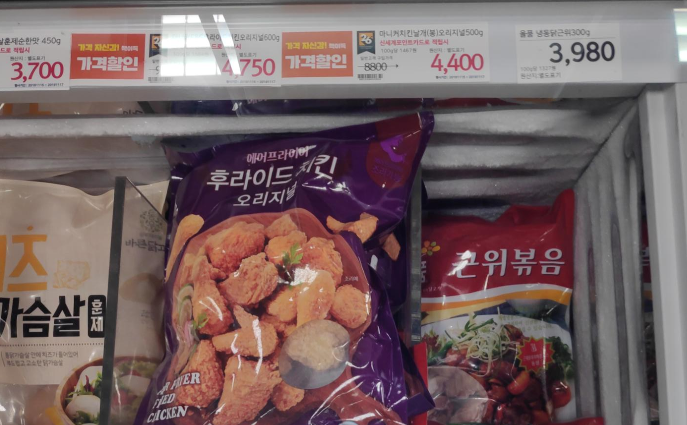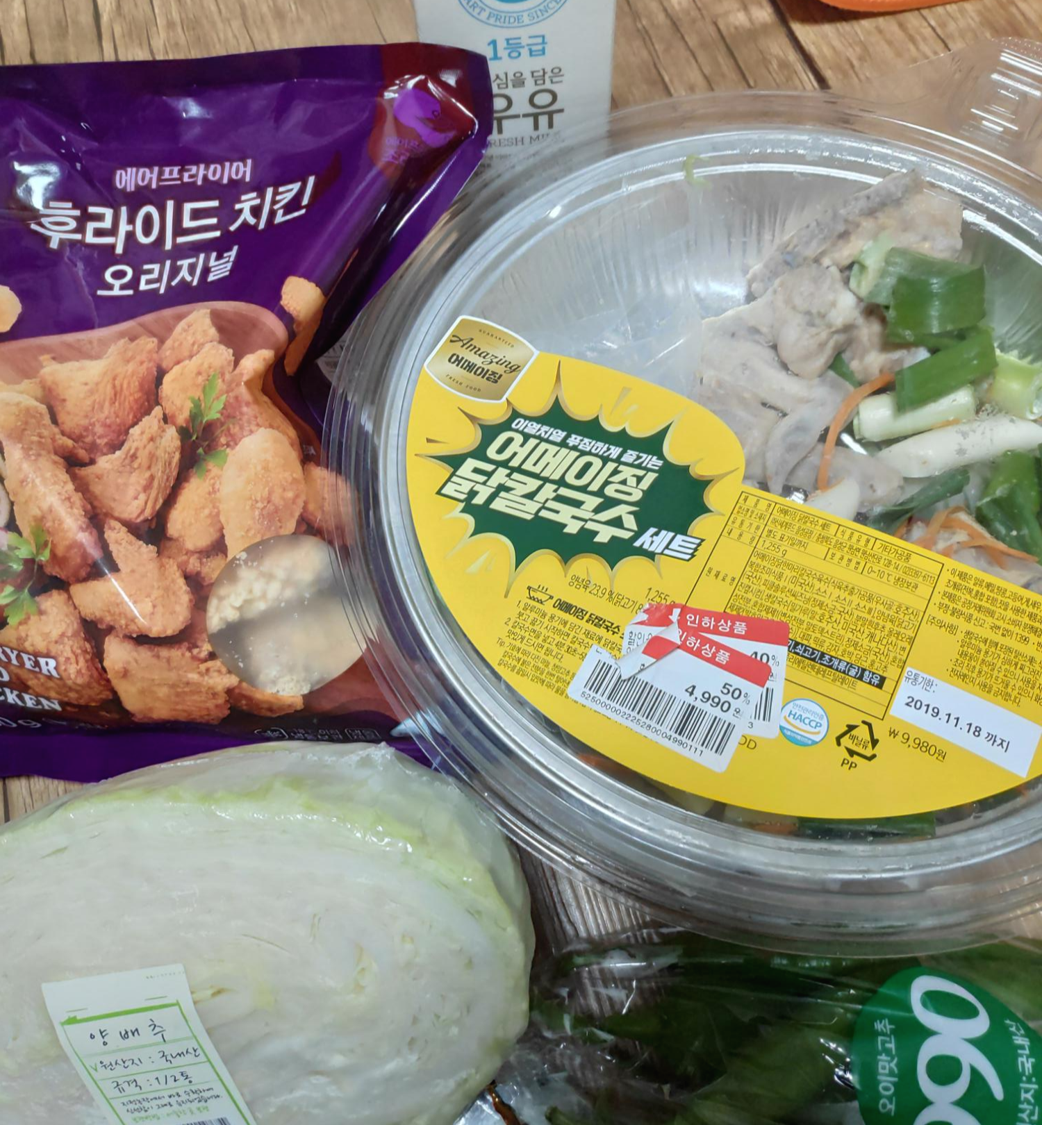 어제 저녁 10시에 마실 겸 이마트를 다녀왔습니다.. 처음 목적은 야채와 우유 정도만 사러 갔지만.. 닭제품을 2개나 추가로 사왔다는 사실 ㅋㅋ 50% 할인 가격으로 구매한 닭제품들... 최근에 육류는 소고기와..
