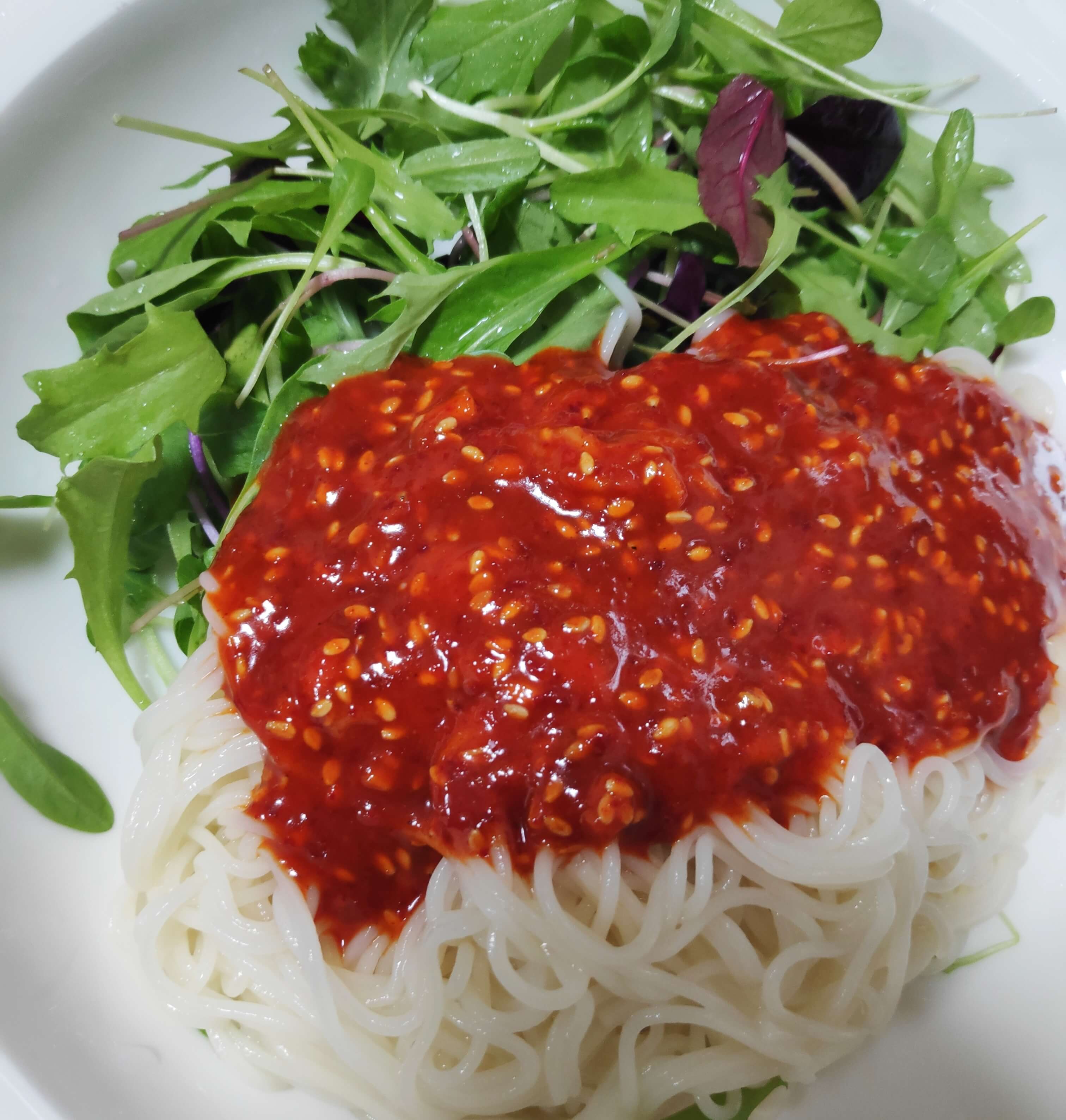 돼지목살과 곁들이는 음식으로 또 잘 어울리는 게 비빔국수죠.