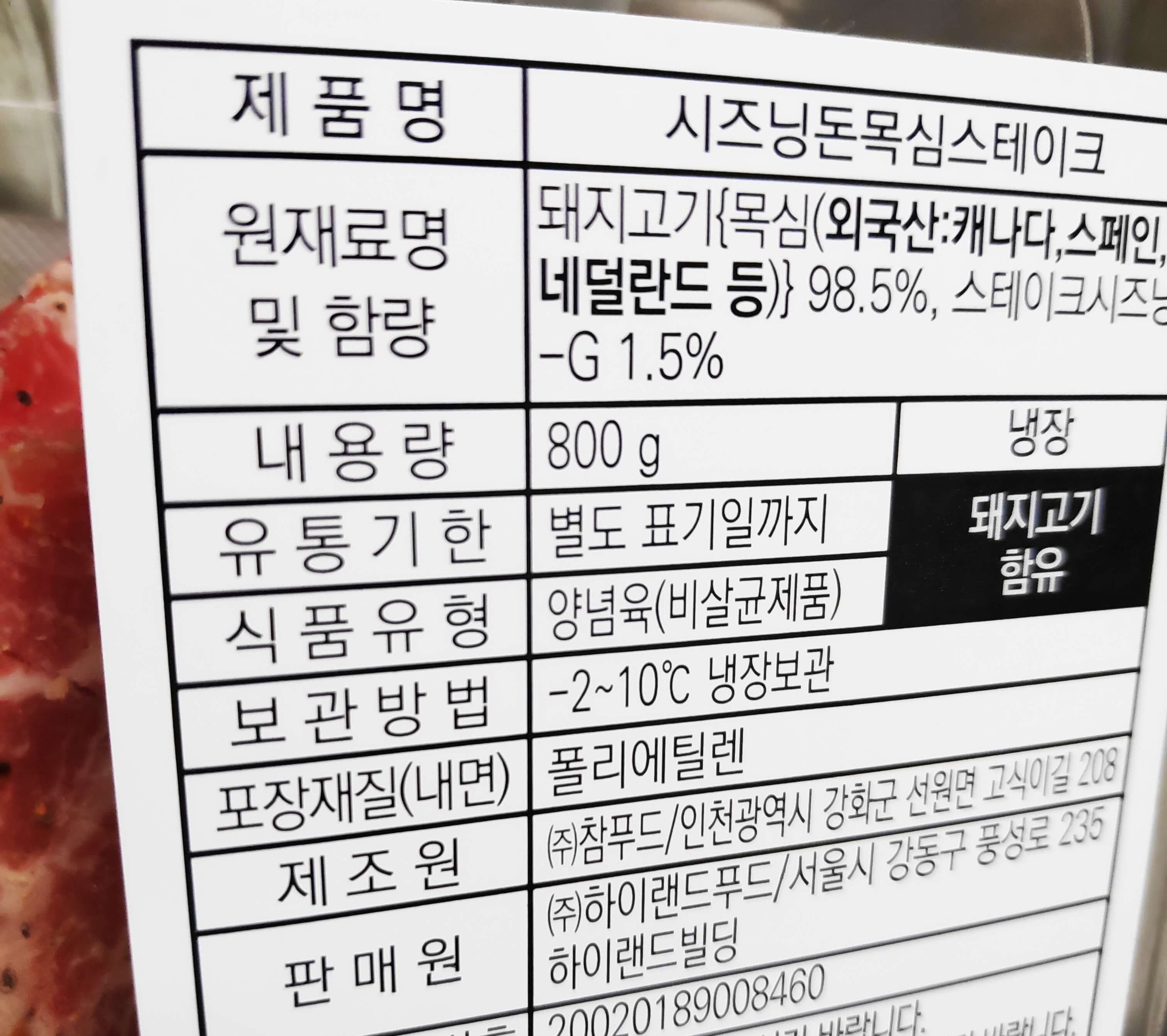 시즈닝 목살 가격은 800g에 9900원입니다 행사하면 7900원인데 행사 자주합니다.