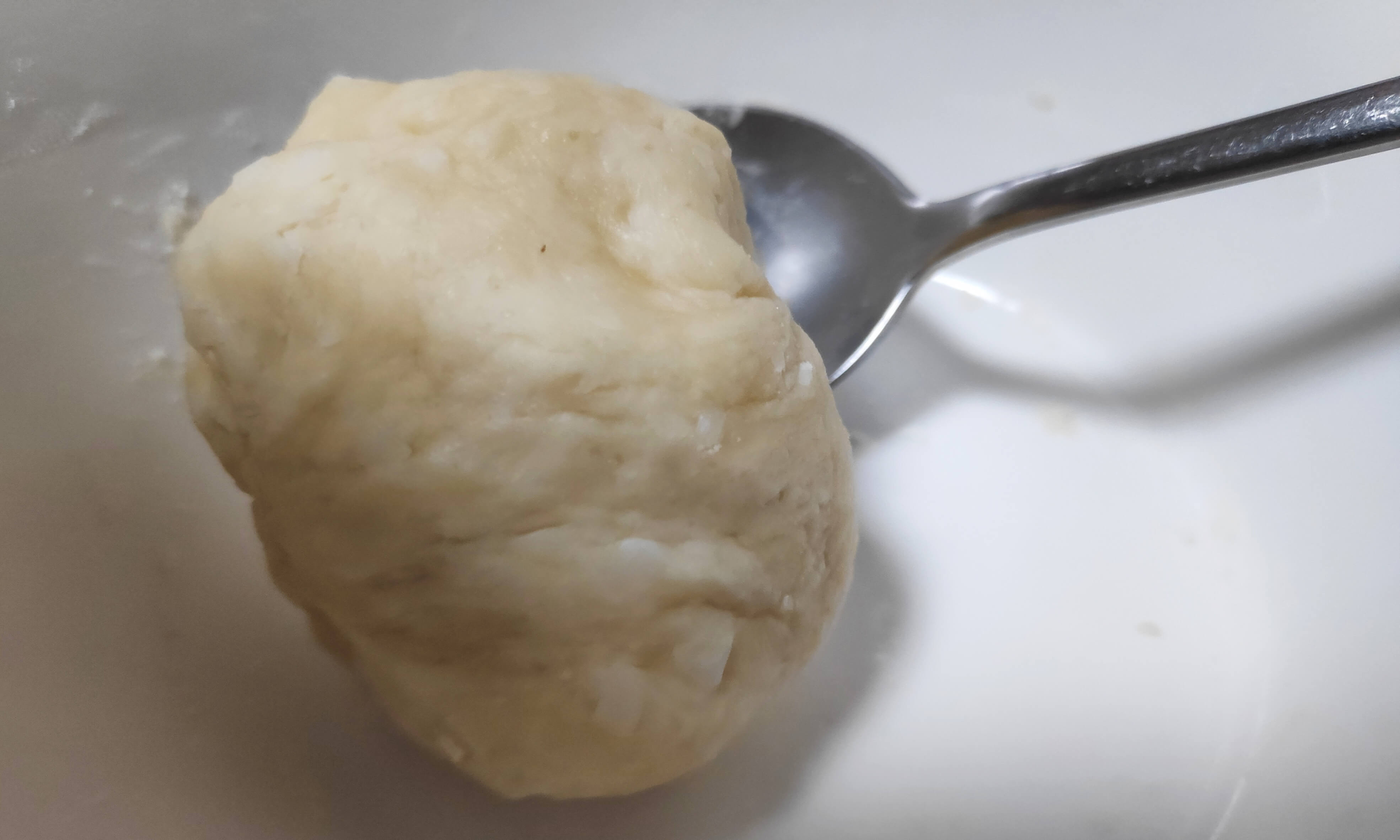 그렇게 숟가락으로 천천히 섞다보면 서서히 뭉치죠.