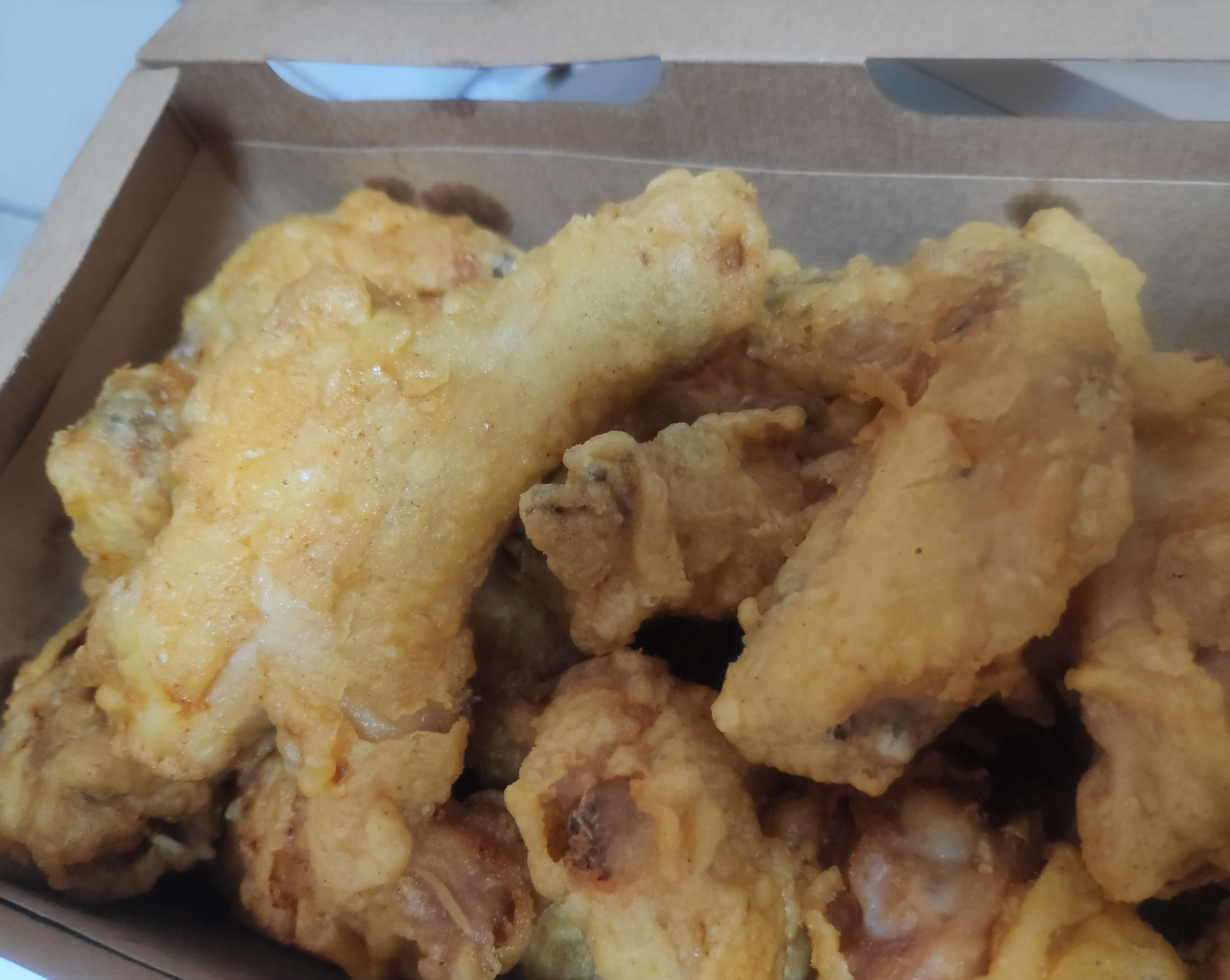 튀김옷이 얇아서 다른 치킨보다 느끼하지 않고 바삭하고 튀김옷 맛도 고소하고 맛있습니다.