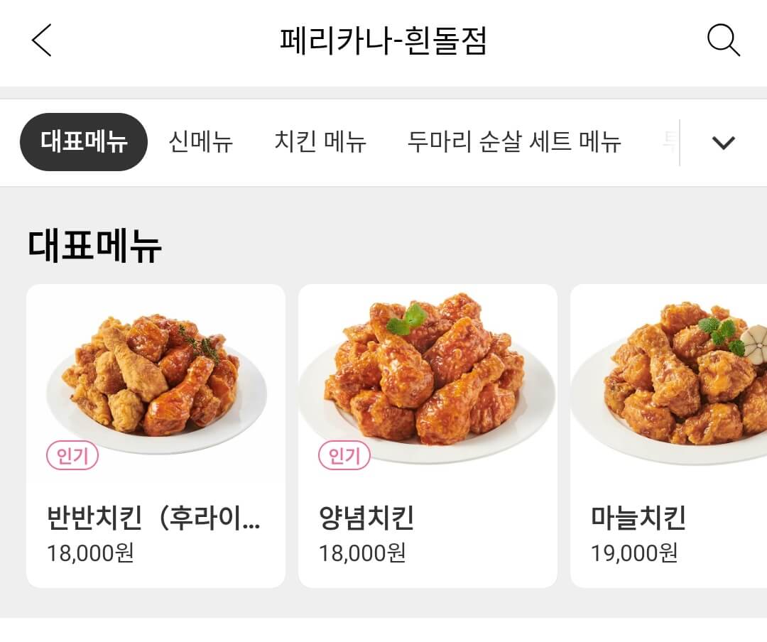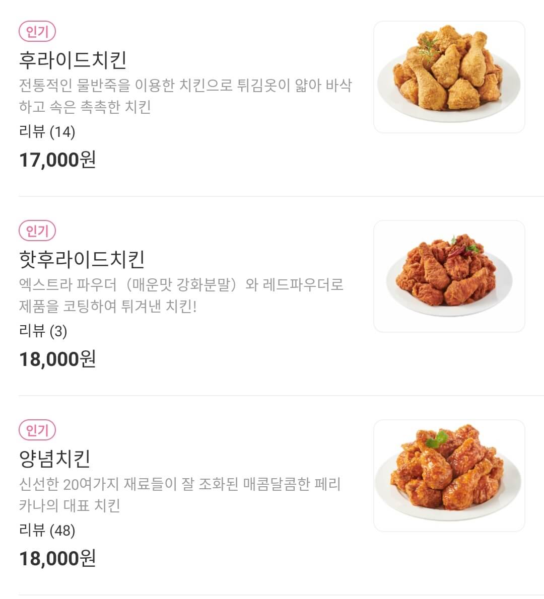 역시 페리카나는 양념의 원조격 브랜드니.