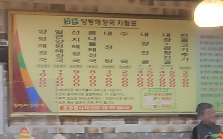 메뉴 추천은 양평해장국과 내장탕 추천합니다.