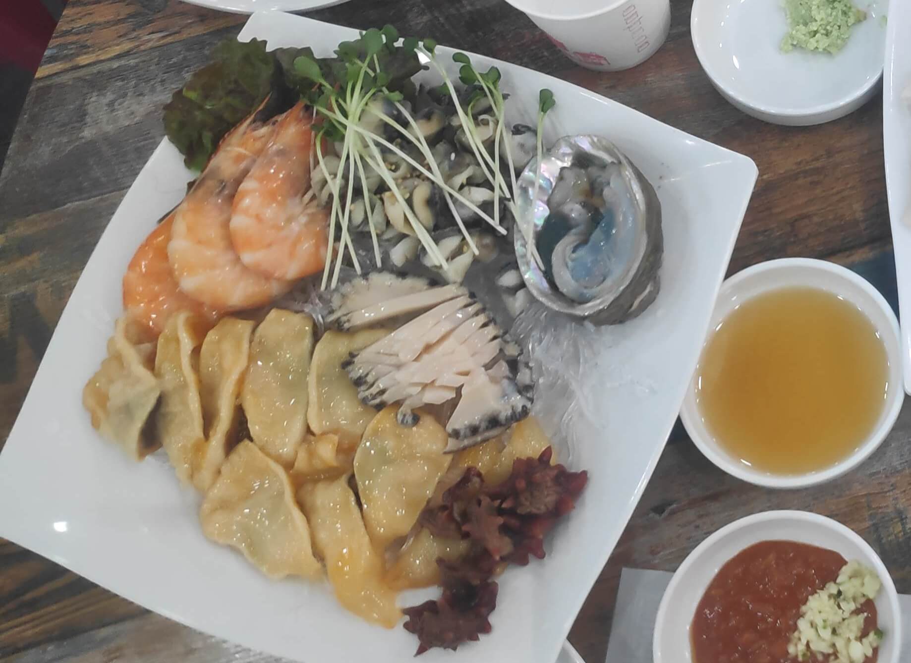 해산물 주문한 건 멍게랑 전복 신선해서