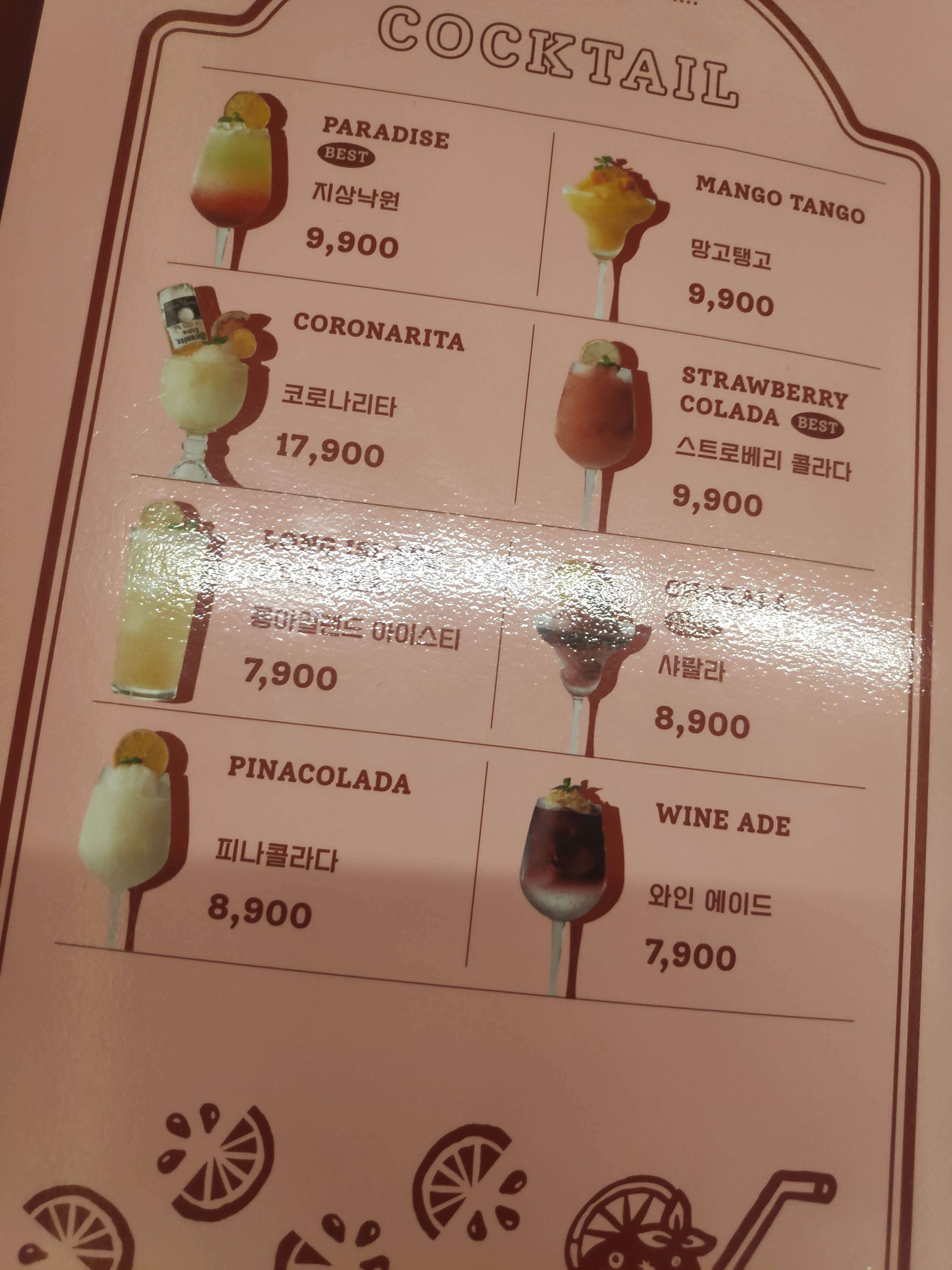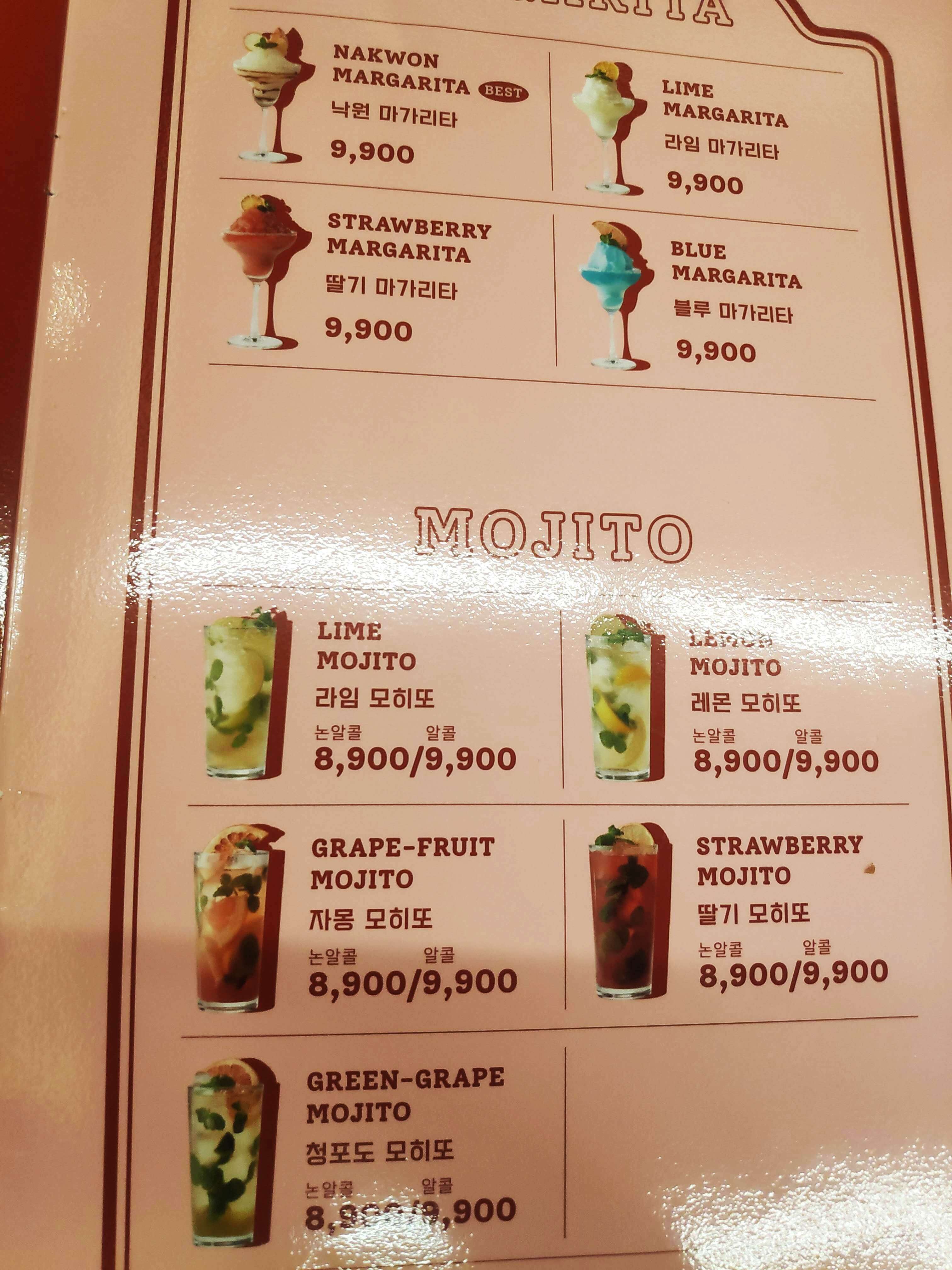 칵테일, 맥주, 모히또, 에이드, 마가리타, 콜라 등