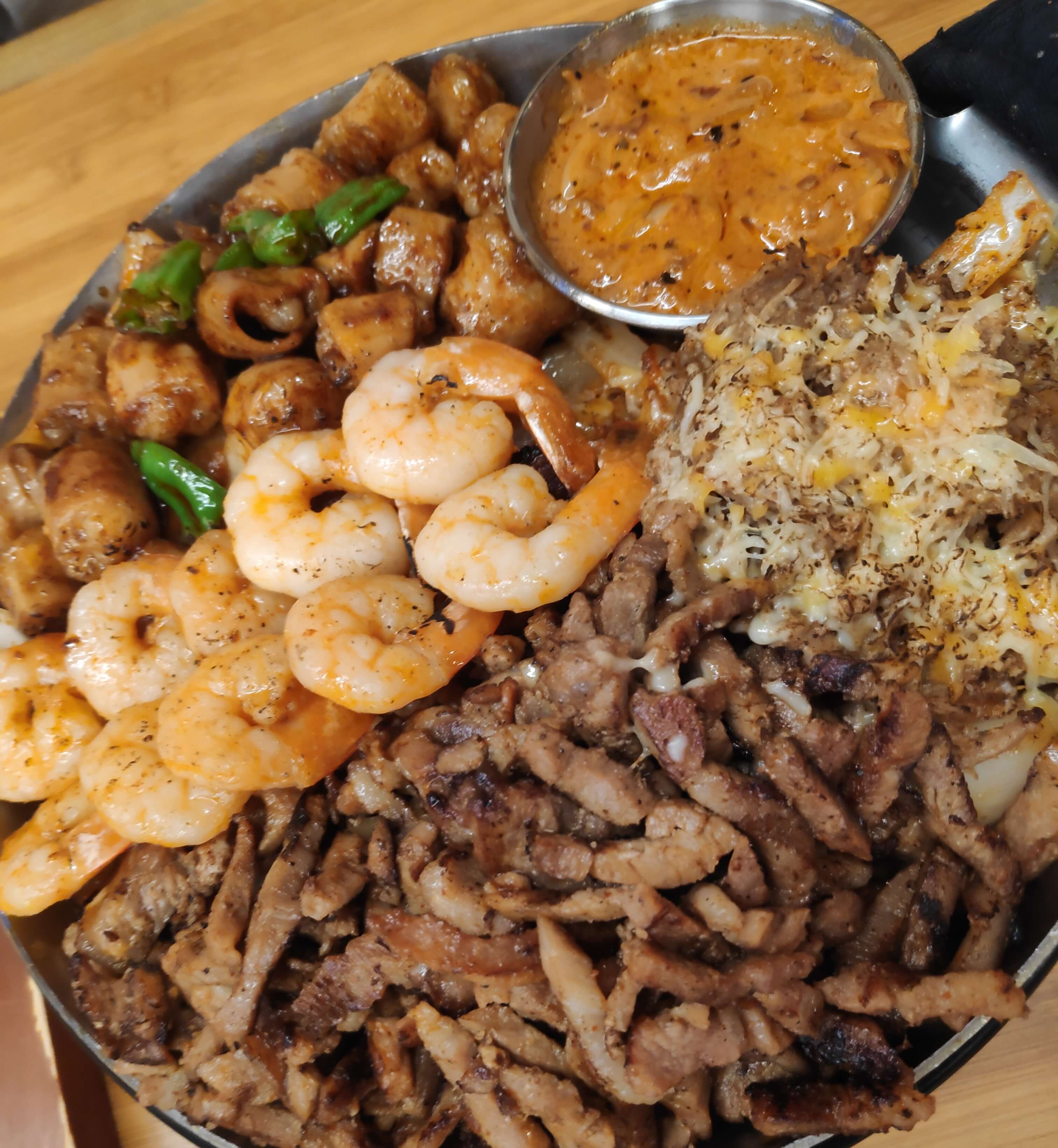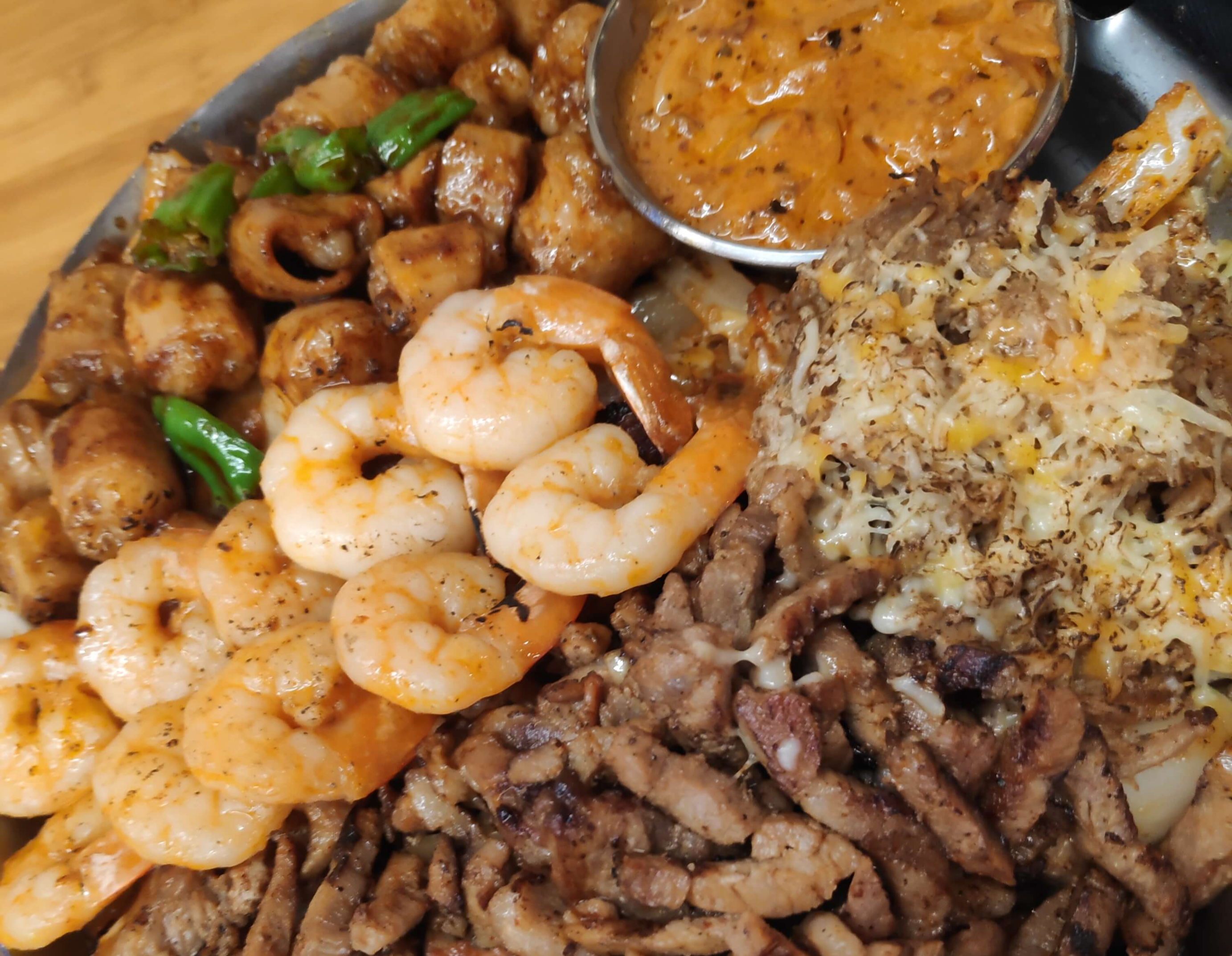 그릴 향, 불향 새우, 곱창, 돼지고기 조합
