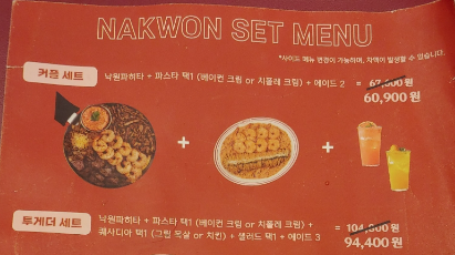세트메뉴는 최소 3인 이상일 때 추천드립니다.