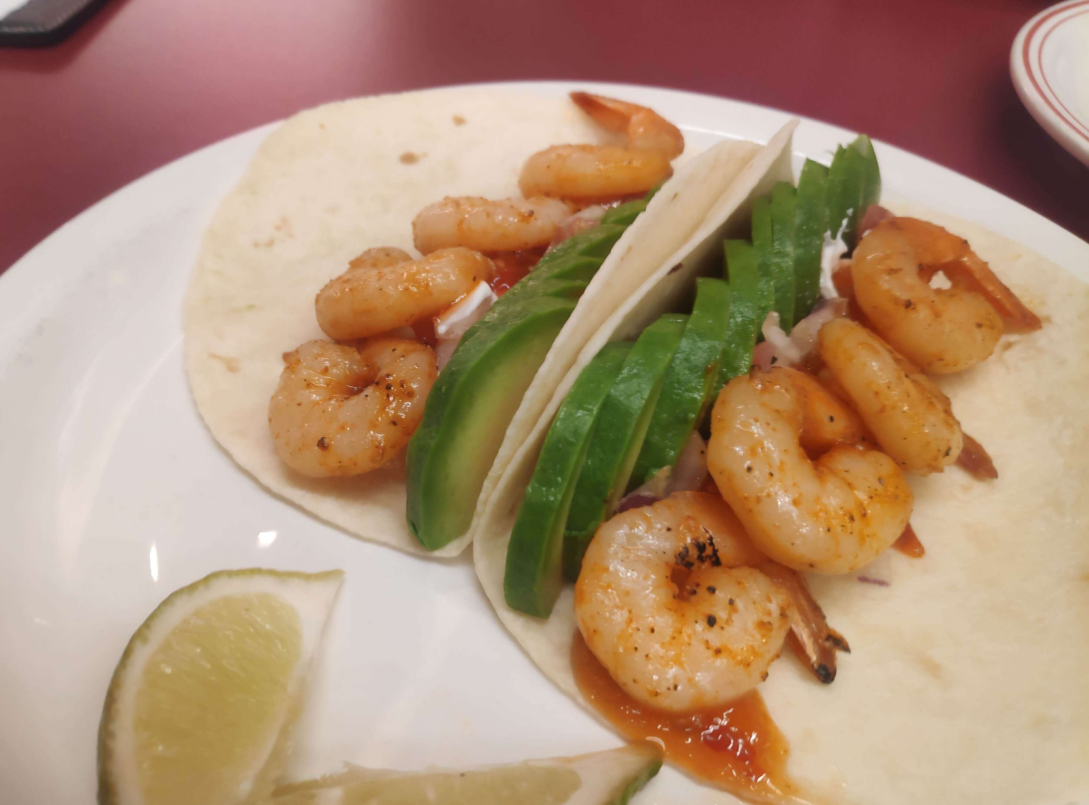 아보카도 새우 타코입니다.