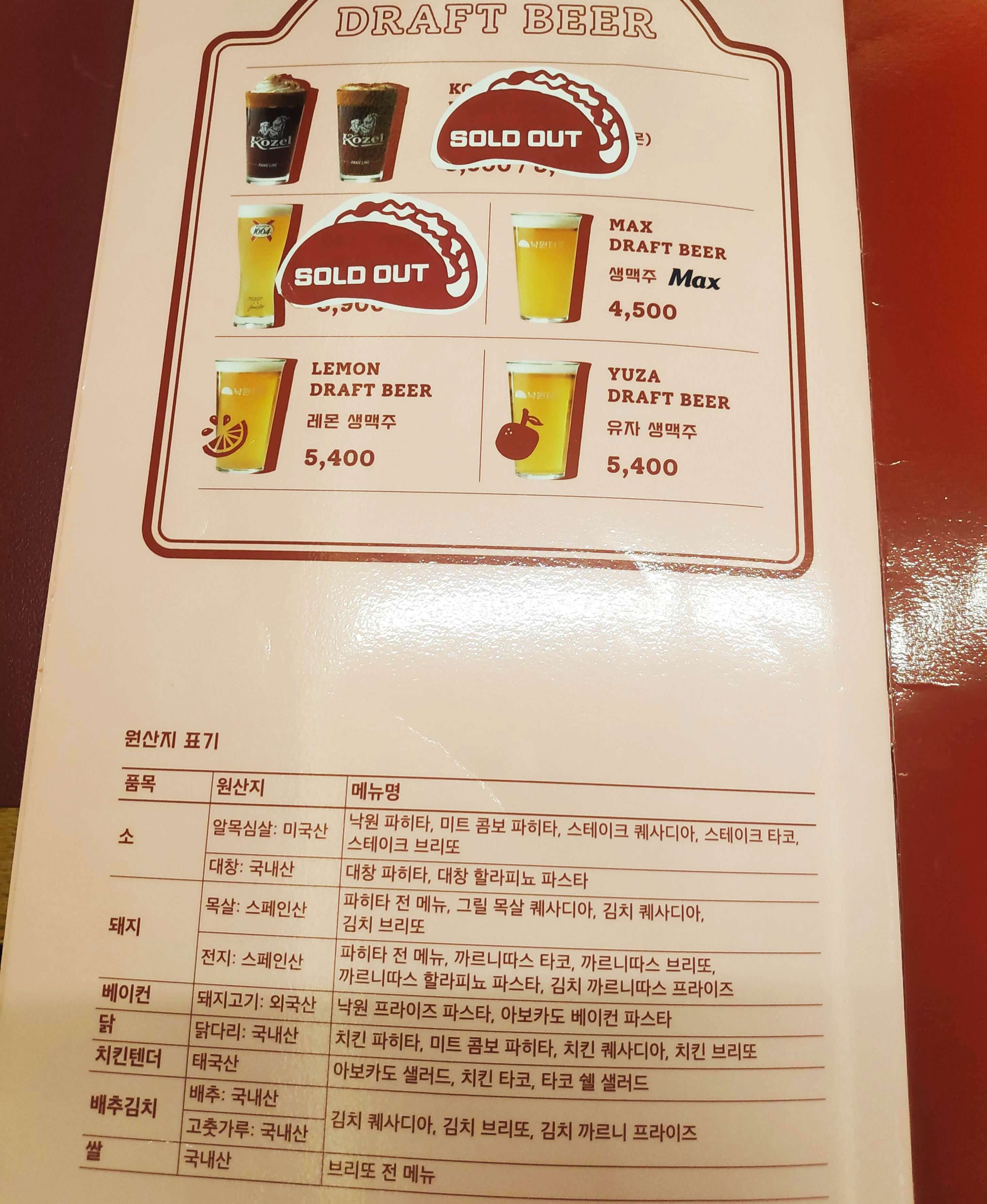 메뉴판입니다.