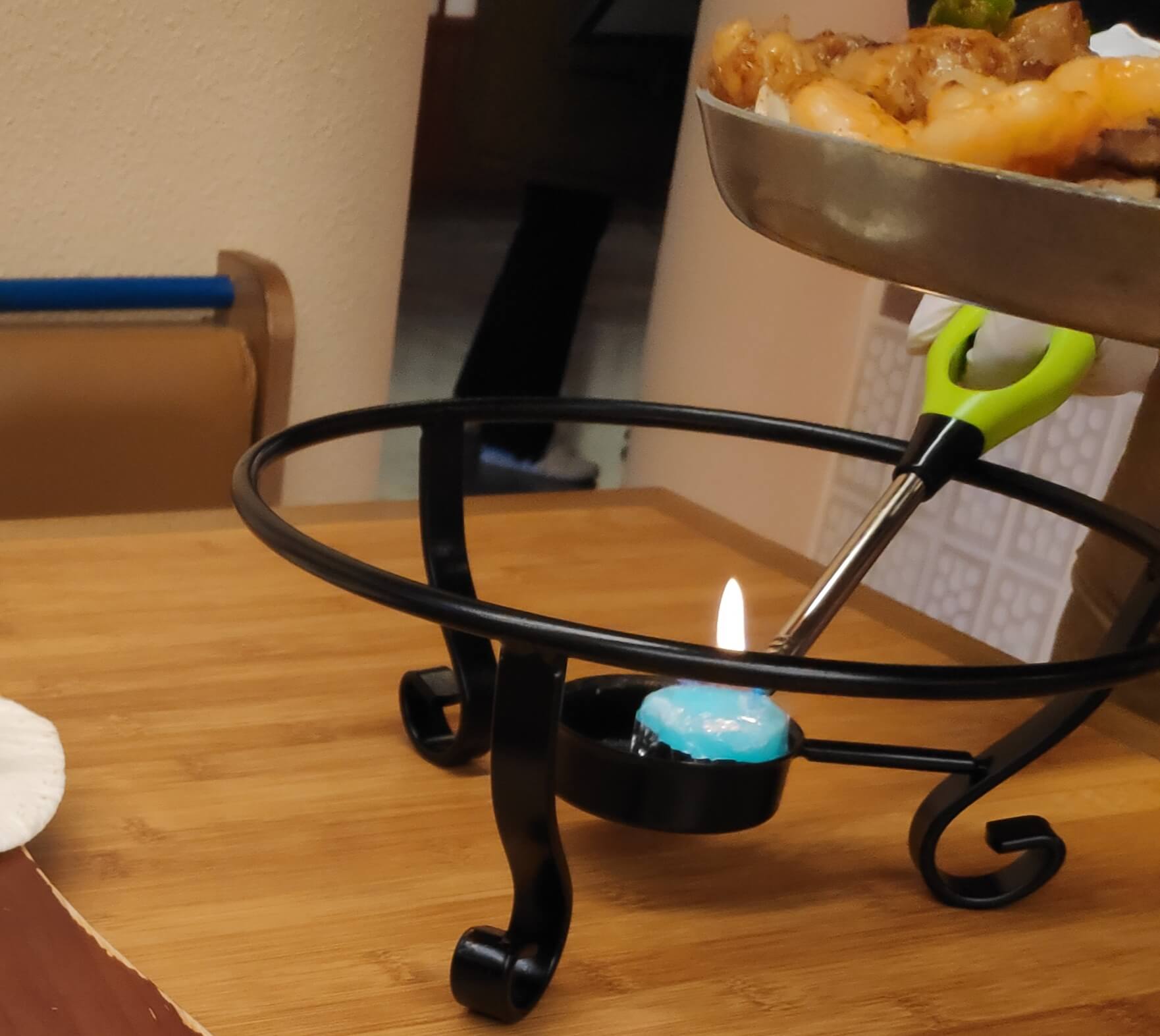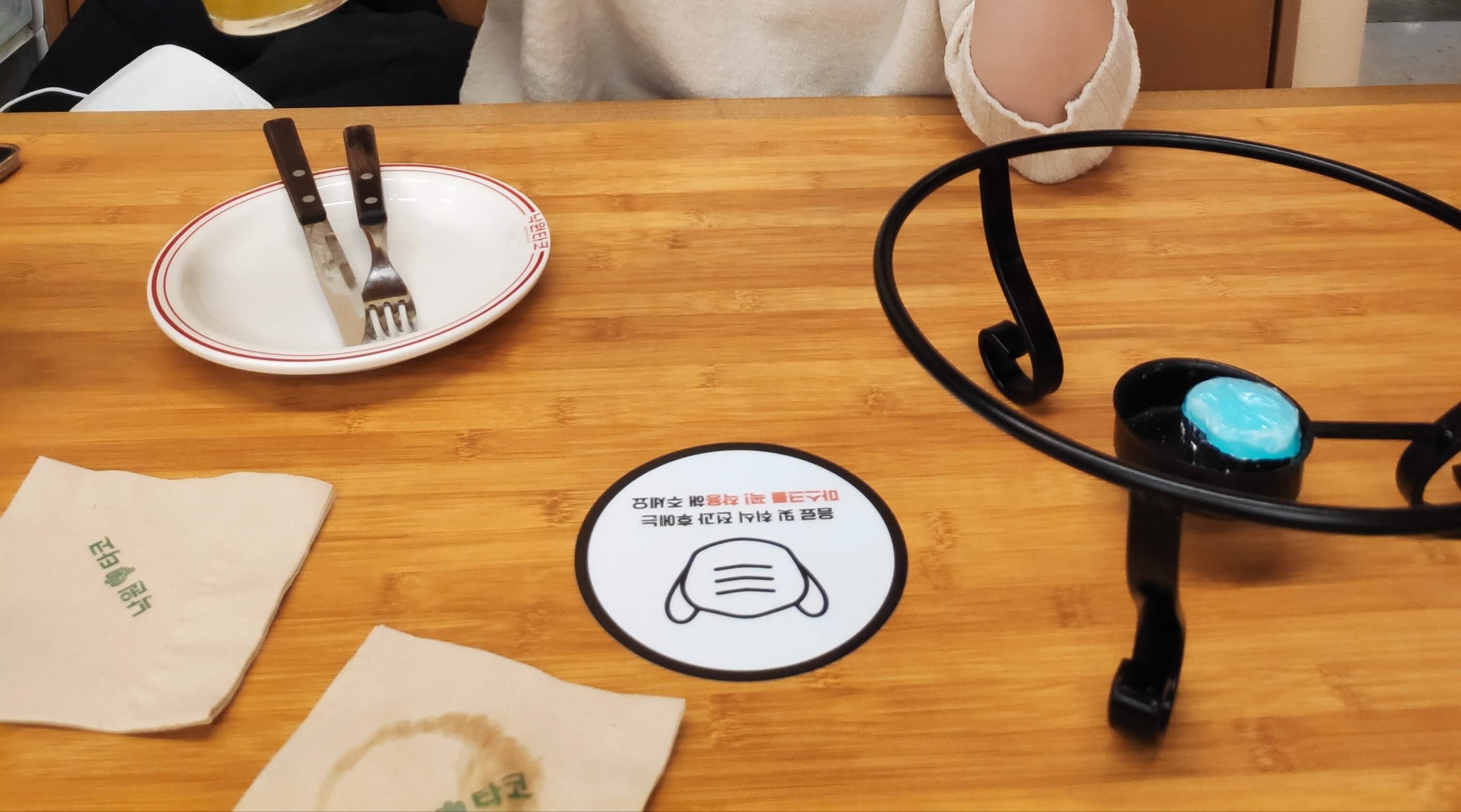 화로와 접시, 포크, 나이프가 세팅됩니다.